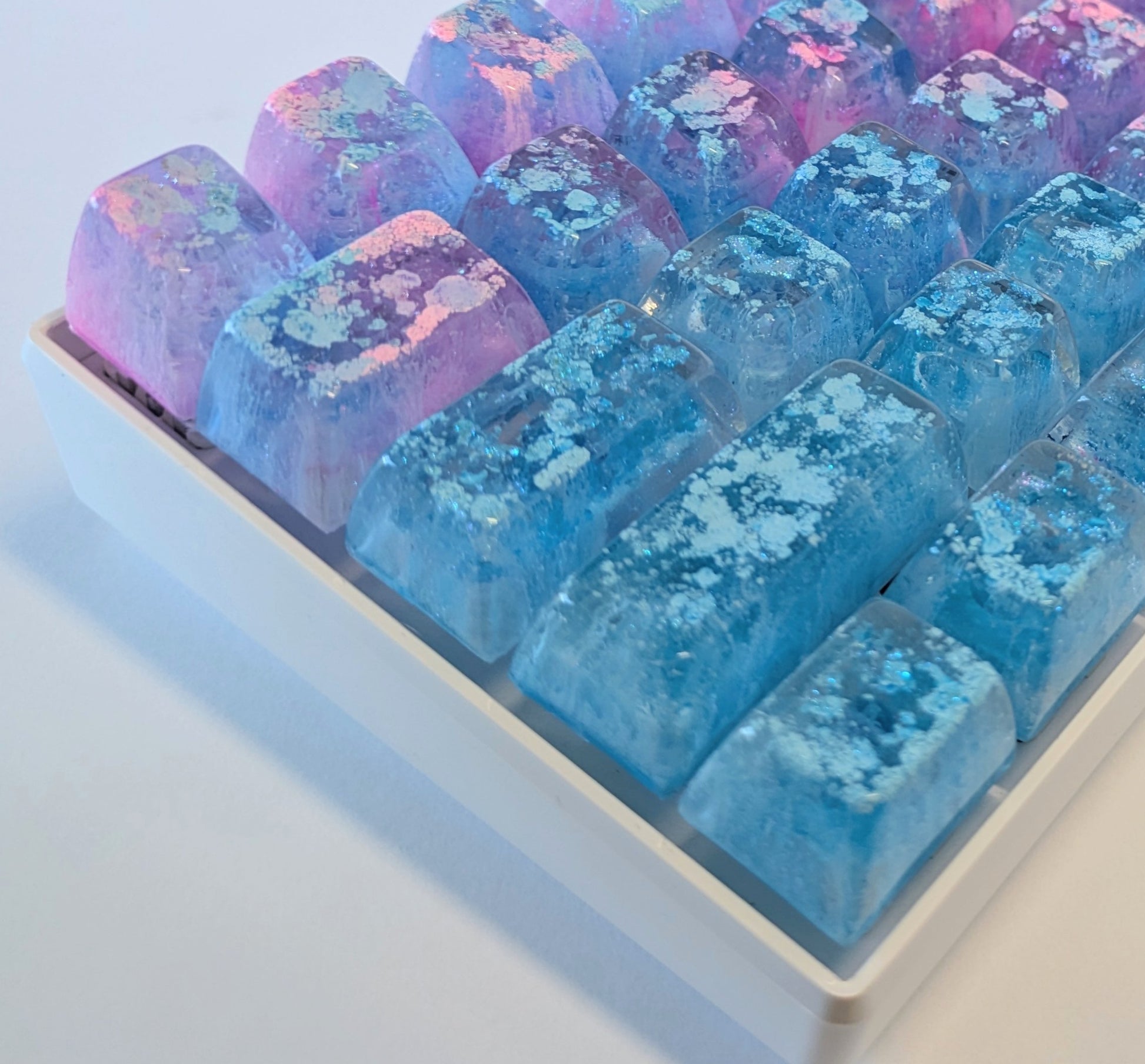 These 1.75u keycaps are just plain gorgeous. They’re handcrafted with crystal clear epoxy resin and each has a one-of-a-kind vibrant ink drop pattern that you won’t find anywhere else.