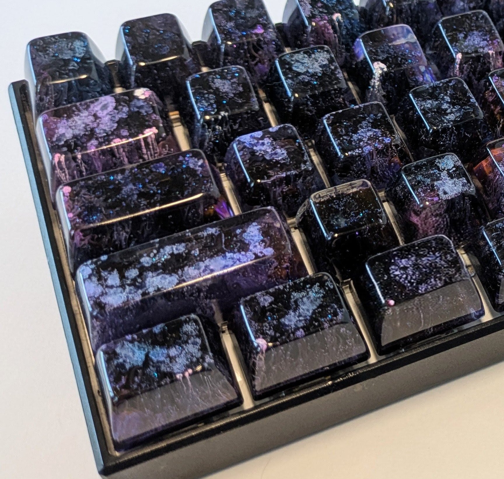 The Space and Dreamy colors include opalescent shimmer which can create a little bit of texture on the tops of some keycaps