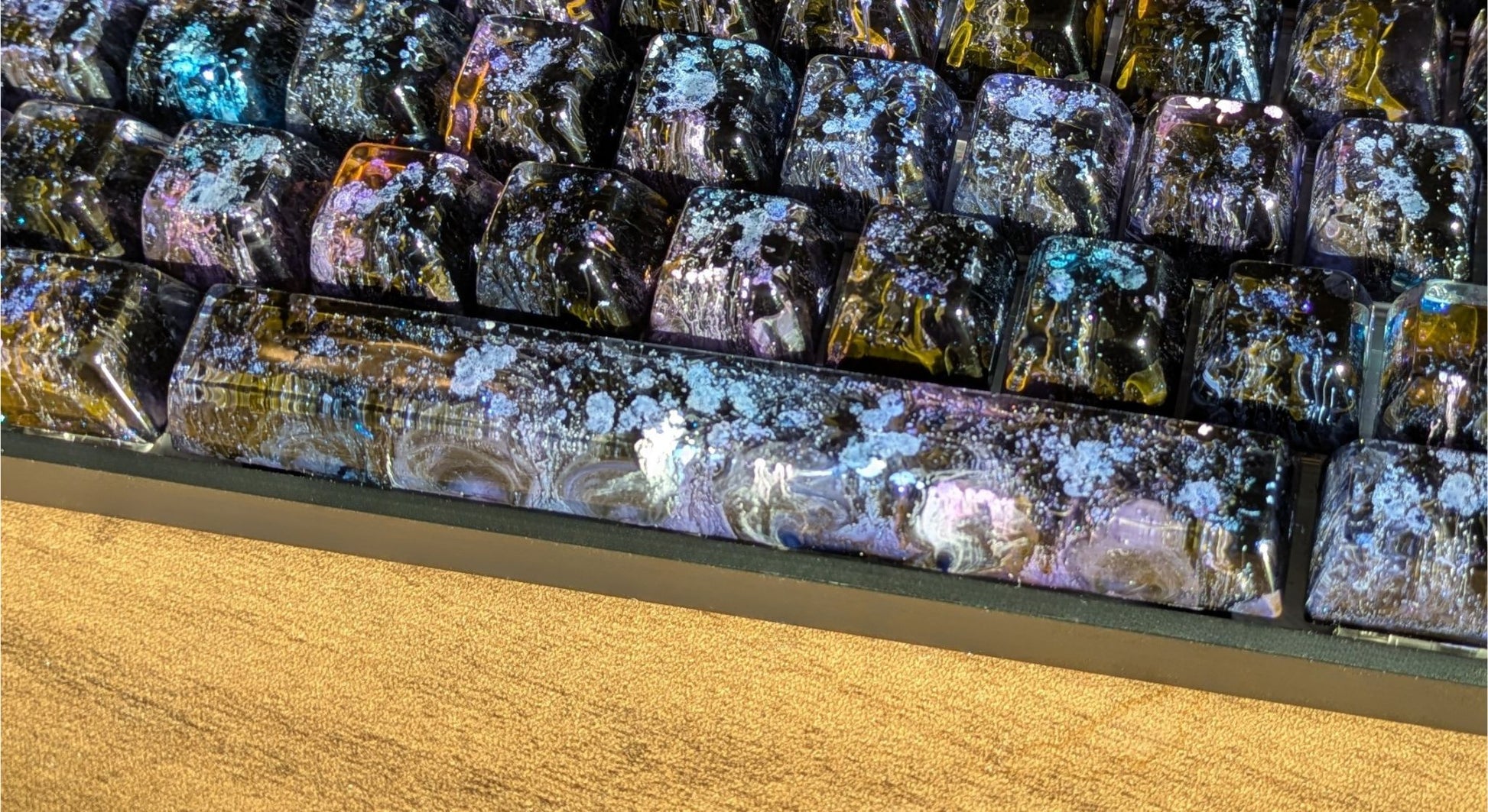 The Space and Dreamy colors include opalescent shimmer which can create a little bit of texture on the tops of some keycaps